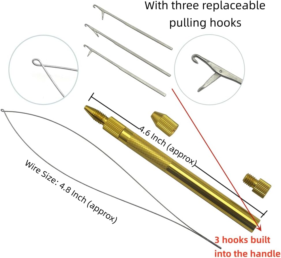 • Pulling Hook Needle Bead Device Tool Kits; The hair extension loop needle kit design with mental handle, can be applied with micro beads and tubes, saving you both time and energy, which is an essential tool for feather hair installation .Our Pulling hook comes with 3 extra changeable hooks, it built into the handles. It's not easy to lose.