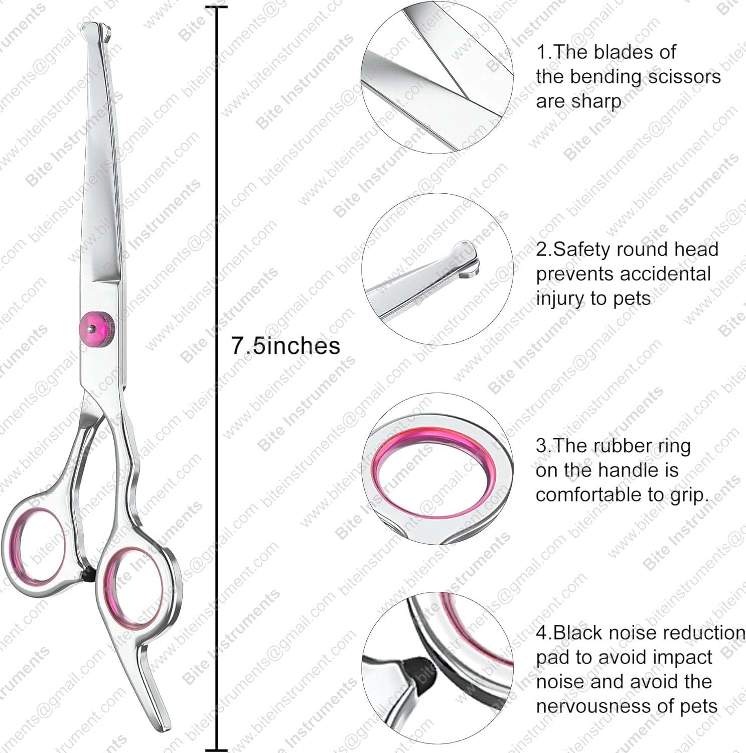 Give your pets a salon-quality grooming experience with Bite Instruments Curved Grooming Scissors – combining safety, precision, and comfort in one tool.