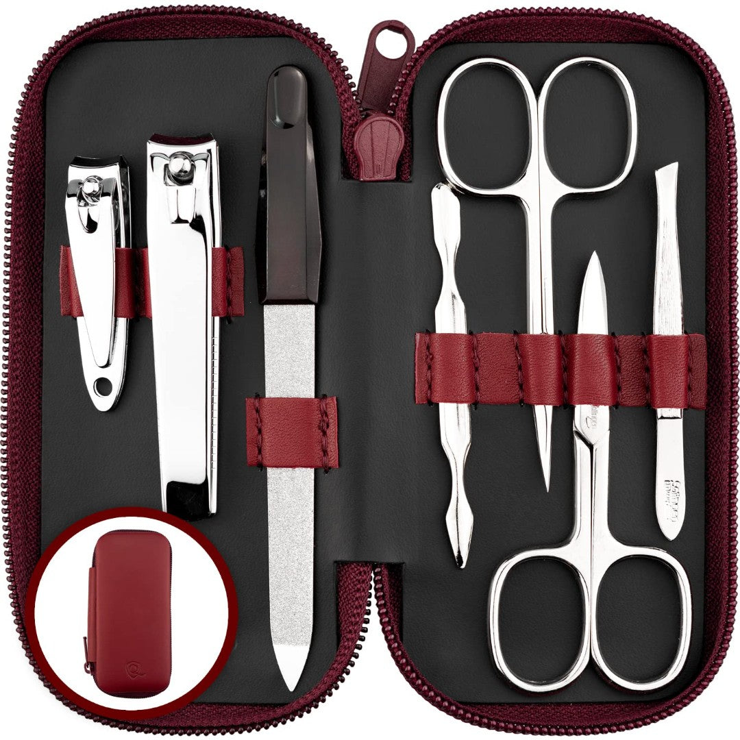 - ✅ EVERTHING YOU NEED: This complete manicure pedicure set for women and men allows you to grow long, healthy, beautiful nails! Including 1x fingernail clippers, 1x toenail clippers, 1x tweezers, 1x nail-scissors, 1x cuticle-scissors 1x sapphire -nail file 125/75µm - coarse and fine - all together in a soft black leather manicure case.