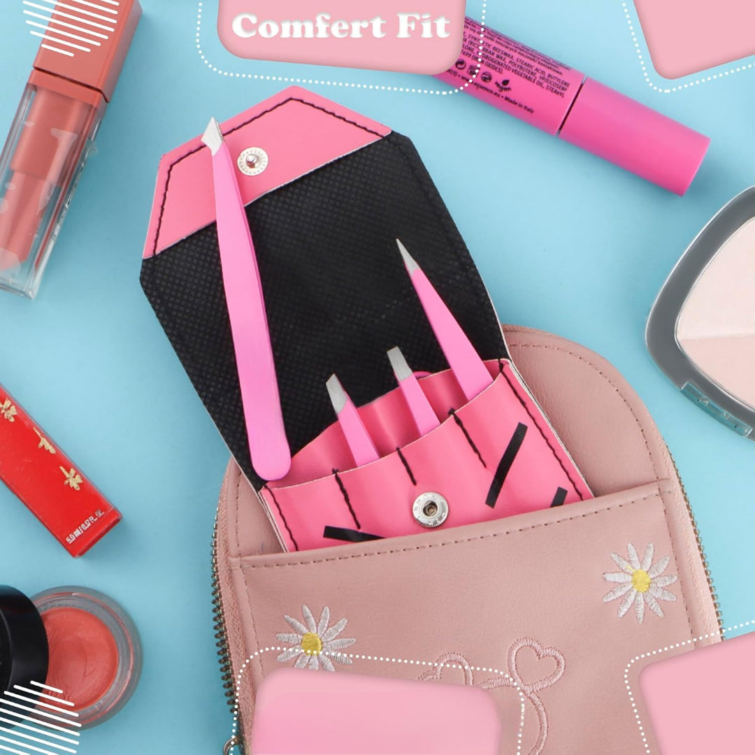 - PROTECTION WITH CASE: The carrying case provides a safe, organized space for your professional tweezers. Each tweezer has an individual pocket, so the tweezers can be inserted into the case when not in use, ensuring they won’t fall out or get lost. Our 4pcs tweezers set for women facial hair is kept safe and secure in this stylish case.