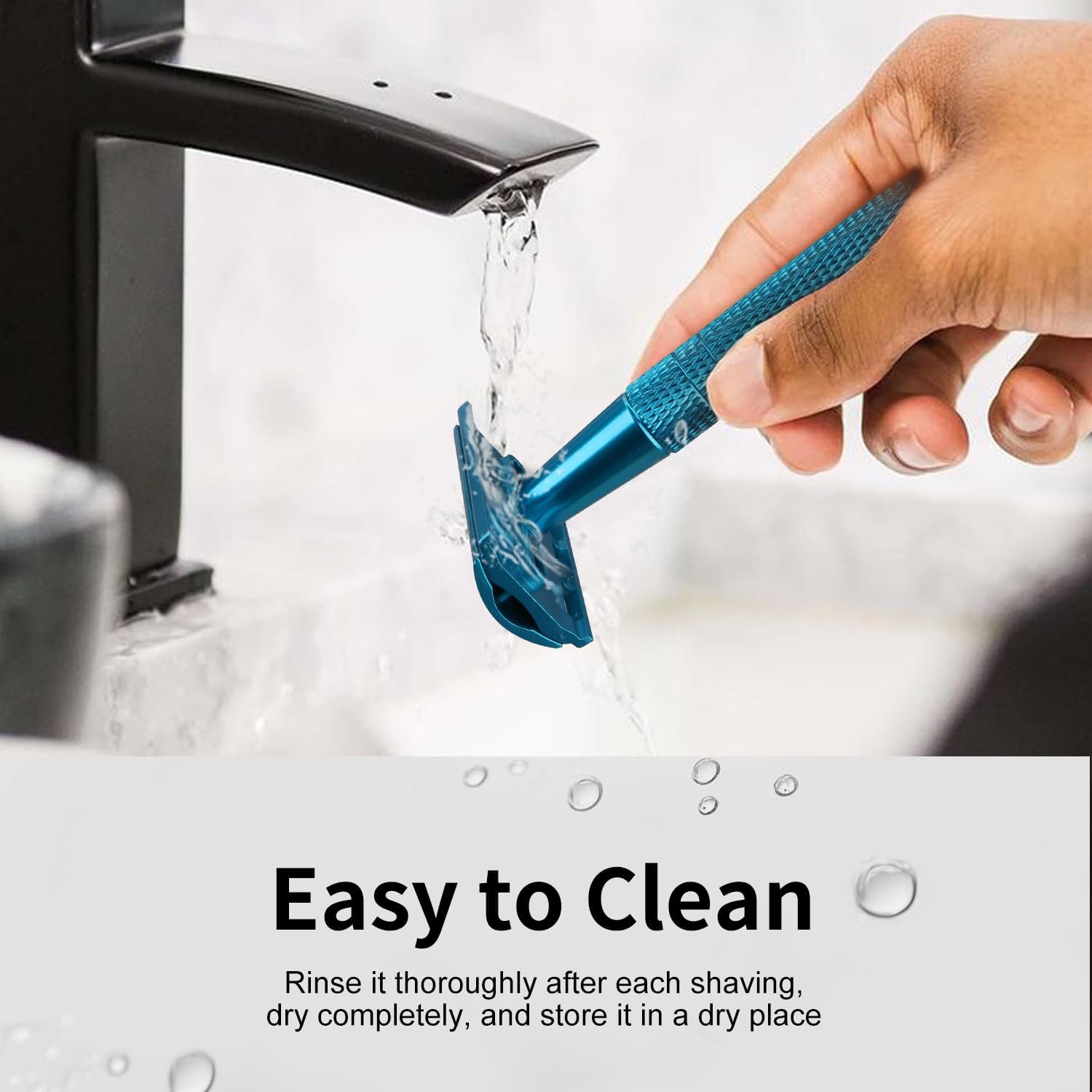 • Easy to Use, Clean and Maintain: Easy change razor blades in seconds. Non-slip grips ensure better precise control. Hold the safety razor blade at about 30-45 degree angle against your skin. Start shaving - Light Pressure and Use Short Strokes. To keep your safety razor for a life-time use, rinse it thoroughly after each shaving, dry completely, and store your razor in a dry place to keep it in great condition! Avoid harsh cleaners as these can damage the razor's finish and components