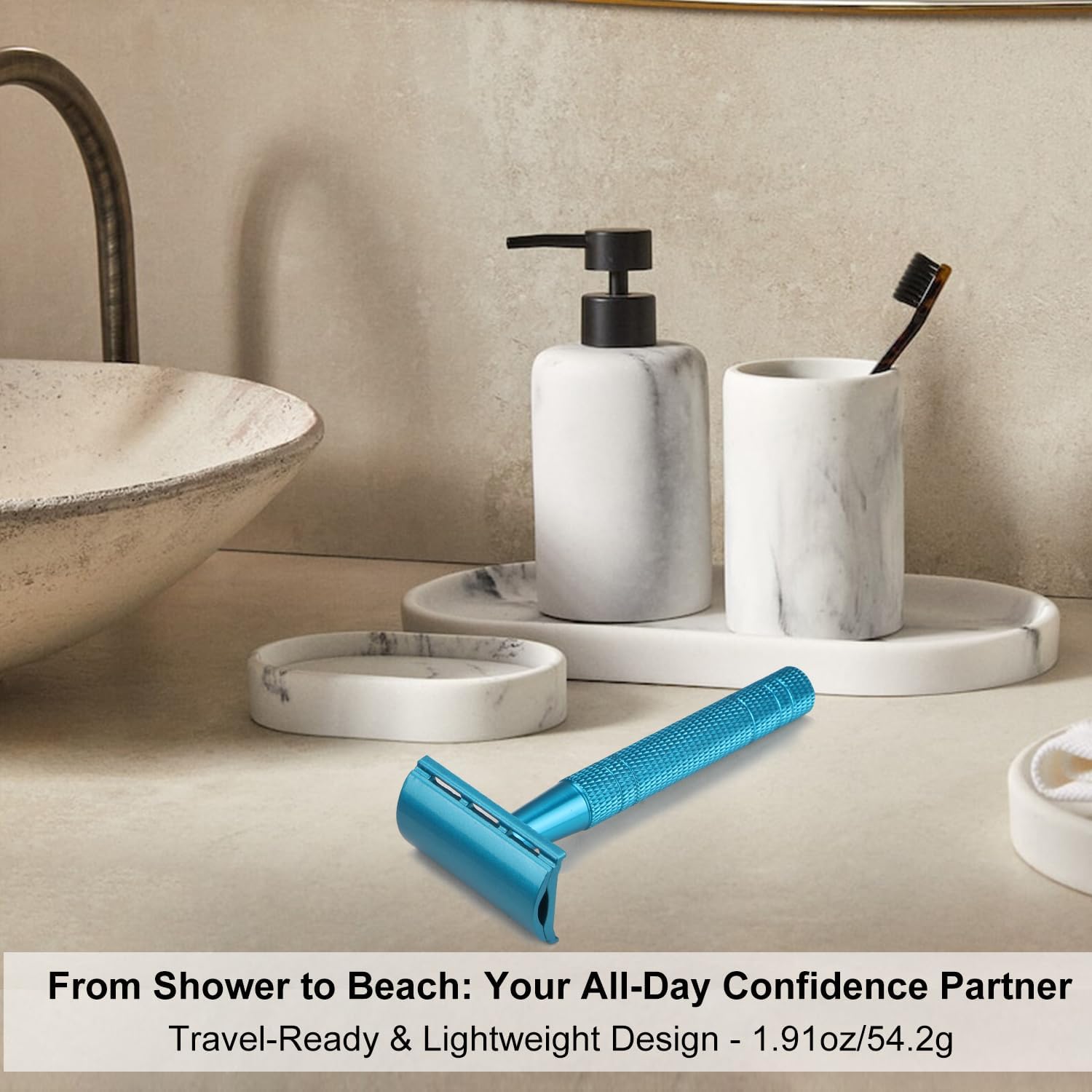 • Travel-Ready & Lightweight Design: Perfect for on-the-go grooming! 30% less than standard metal safety razors, this compact safety razor fits perfectly into any toiletry bag or suitcase. Making it ideal for travelers and eco-conscious adventurers. Perfect for gifting to family or friends who value zero-waste lifestyles